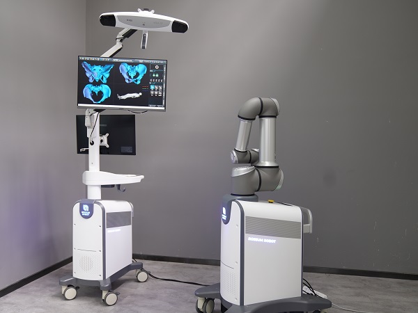 智能化骨折复位机器人是北京积水潭医院与北京罗森博特科技有限公司共同研发的全球首个骨盆骨折复位机器人产品,针对创伤骨科难度最大的骨盆骨折手术,在全球率先实现了术中实时3D导航、辅助骨折复位操作、自动手术规划等功能,能够进行从骨折闭合复位到微创固定全手术流程的智能化手术操作,满足了临床治疗的迫切需求。