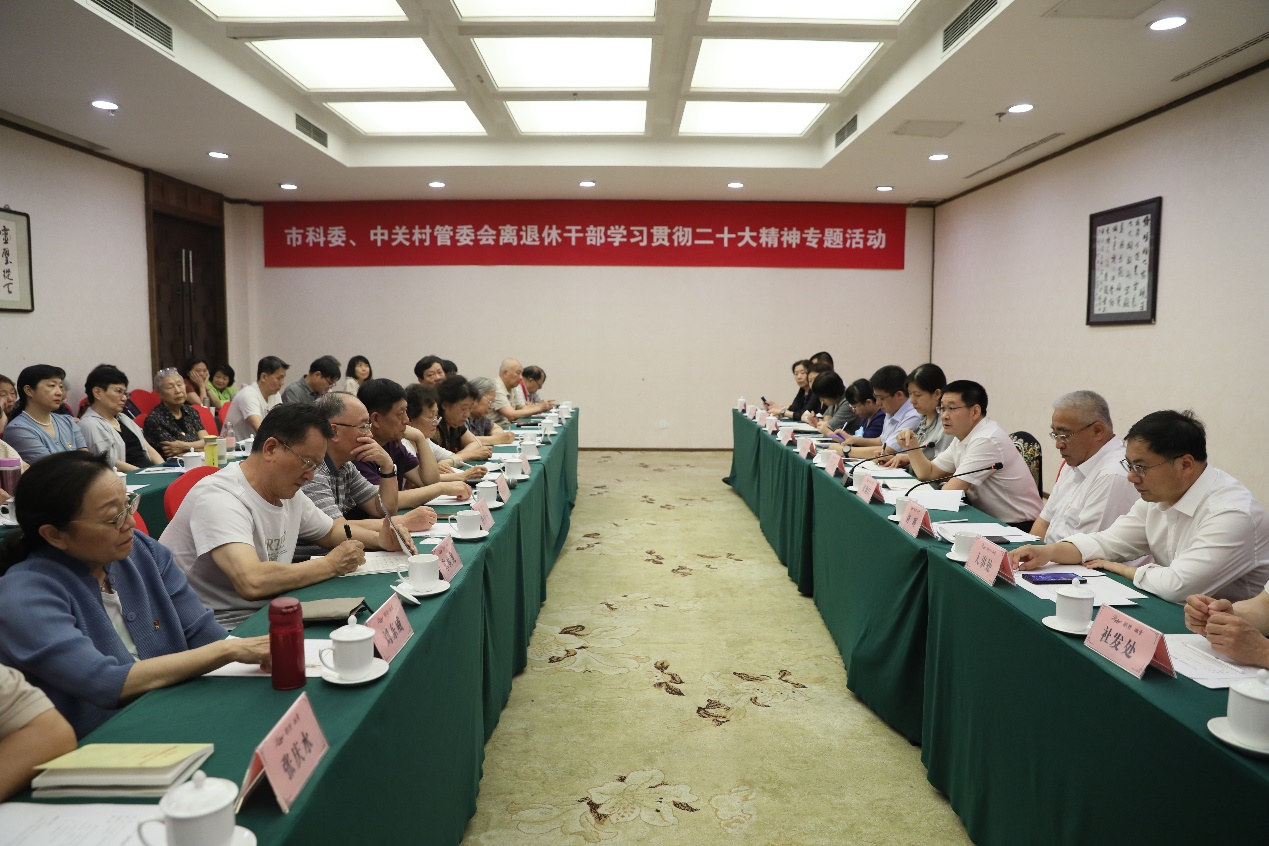 6月28日,北京市科委、中关村管委会举办“迎七一 颂党恩”离退休干部座谈会。委党组书记、主任张继红与40多名离退休干部座谈交流,委党组成员、副主任刘晖主持会议。
