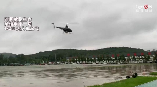房山中关村应急装备产业园企业航景创新公司,接到房山区政府关于通信物资投放任务指令后,迅速启动应急救援无人直升机紧急任务预案,快速组建一支16人的无人机小分队,在全程暴雨大雾中连续翻越7座山,将卫星电话、充电宝等通信设备,通过通过无人机索降方式精准投放至目标点,完成投放任务。