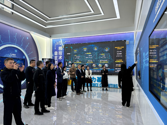 与会人员参观了中关村(京西)人工智能科技园展厅、"京西智谷"人工智能计算中心,对园区产业生态、产业集聚等情况有了初步了解。中关村(京西)人工智能科技园产业服务总监许靖详细介绍了智慧园区建设情况、面临的痛点、难题及未来建设需求考虑等内容。
