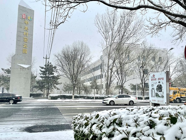 飞雪如约而至,中关村科技园银装素裹,风景美如画。