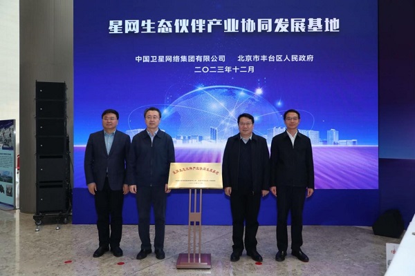 韩耕、初军威,中国星网副总经理牟相军、规划发展部主任付朝华共同为"星网生态伙伴产业协同发展基地"揭牌。该基地将有效集聚北京一流创新人才和创新主体,为中国星网产业链上下游企业提供全方位的服务保障。