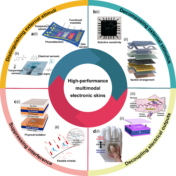 对此,该文章总结了多模态电子皮肤在识别和分解外界刺激、抑制干扰和去耦输出等四大方面的关键技术,详细阐述了多模态柔性电子皮肤的研究现状、关键技术、未来发展方向,相信这些前沿内容将为相关领域的发展提供很多有价值的参考。
