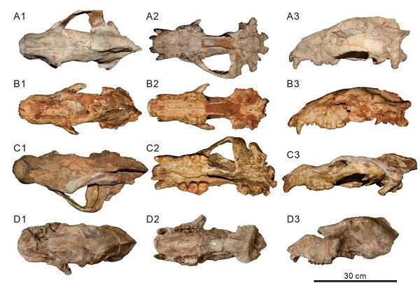 师氏印度熊,邱氏风神熊,科氏风神熊和西瓦郊熊头骨对比