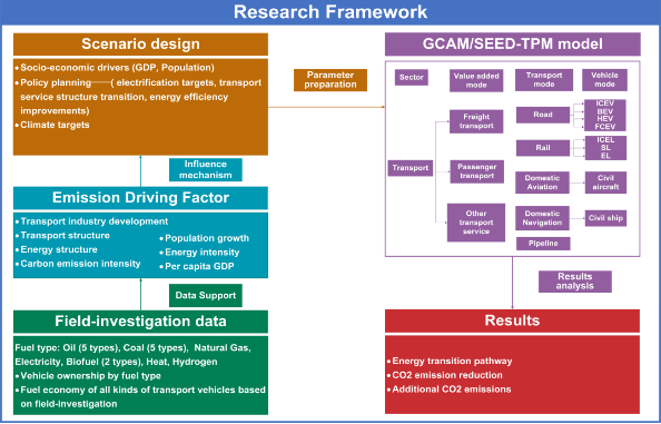 近期,北京理工大学王兆华教授团队与英国伯明翰大学单钰理教授团队合作发现,电能替代能否真正实现CO2的减排,很大程度依赖电力结构的清洁化程度。具体来说,研究团队自主研发了基于政策导向的SEED-TPM交通部门电能替代模型,采集并制备了多部门电能替代技术详细参数。他们将SEED-TPM模型与国际上权威的GCAM模型进行耦合,将SSP(Shared Socio-economic Pathways)情景与电能替代政策指标和技术参数相结合,构建了中国化电能替代SSP情景,并探究了各交通部门不同电气化水平带来的直接减排效果和跨部门间接排放影响。该研究建议,在大力推行电能替代政策的同时,还需实施多种组合政策,如匹配、提前实现能源供应部门的清洁化,减排将会更好地发挥其作用。