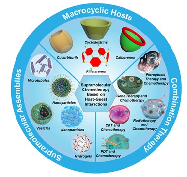 一直以来,化疗是治疗癌症的有效、常用手段之一,它利用化学药物杀死肿瘤细胞、抑制肿瘤细胞生长繁殖、促进肿瘤细胞分化。但传统化疗存在药物溶解度和稳定性有限、副作用严重、生物利用度低、耐药等诸多弊端。这些局限性极大地阻碍了其广泛的临床应用。对此,近日,东北大学理学院周炯教授课题组及合作者提出,基于主客体相互作用的超分子化疗可作为一种很有前途的替代方案,可以高效且低毒地输送抗癌药物。