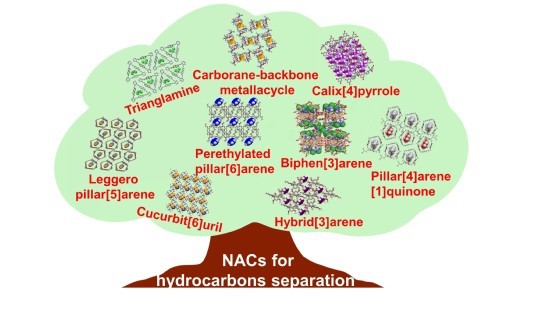 近日,东北大学周炯教授课题组综述了近年来各种基于超分子主体的NACs材料的研究进展,并提出该领域当前的挑战和未来研究方向。课题组对基于柱芳烃、斜塔柱芳烃、联苯芳烃、葫芦脲、三角胺、杂芳烃、杯芳烃、萘管、有机笼、金属笼等超分子主体的NACs的空间结构、应用领域、优越分离性能进行了分析、梳理、展示。