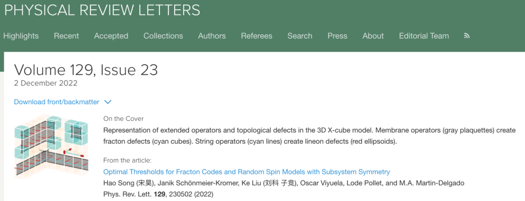 量子自行纠错相关理论探索方面,科学家已经构造出一些分形子(fracton)模型,这类模型简单而奇异,具有一类不可自由移动的点状激发,是超出现有框架的非常规拓扑序。尽管尚不能完全实现自行纠错,但分形子模型揭示了一类非传统意义的新奇拓扑序——分形子拓扑序,提供了超出拓扑计算标准范式的替代方案。但当下,分形子编码的很多基本特性还尚未被探索。