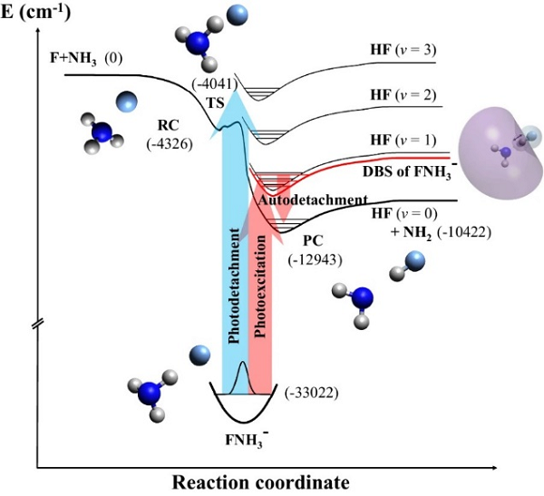 近日,中国科学院精密测量院理论与计算化学研究组宋宏伟与清华大学教授宁传刚团队、新墨西哥大学郭华合作,利用FNH3-负离子偶极束缚态的自脱附现象,成功观测到F + NH3反应过渡态附近弱弗兰克-康登区域的束缚态和Feshbach共振态,为研究化学反应过渡态提供了全新的观测手段。