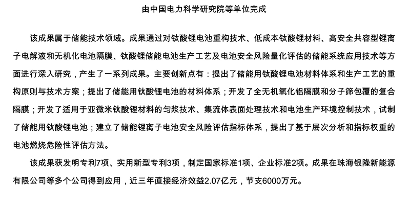 15、储能用低成本钛酸锂电池研制及系统集成技术开发与应用