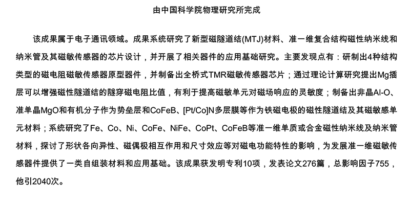113、高性能隧穿磁电阻磁敏传感器的材料、物理与芯片应用基础研究