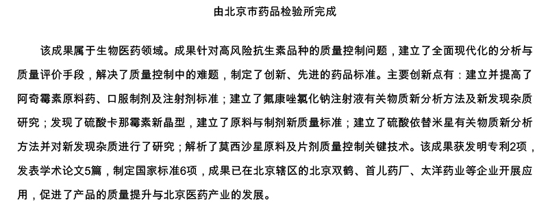 110、高风险抗生素品种质量提升与风险防控体系的建立与应用