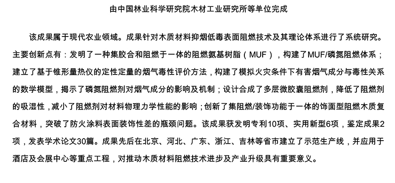 82、木质复合材料抑烟低毒表面阻燃技术研发与应用