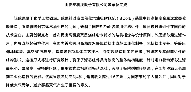 61、S Zorb高精度金属粉末滤芯及过滤器的研制与应用