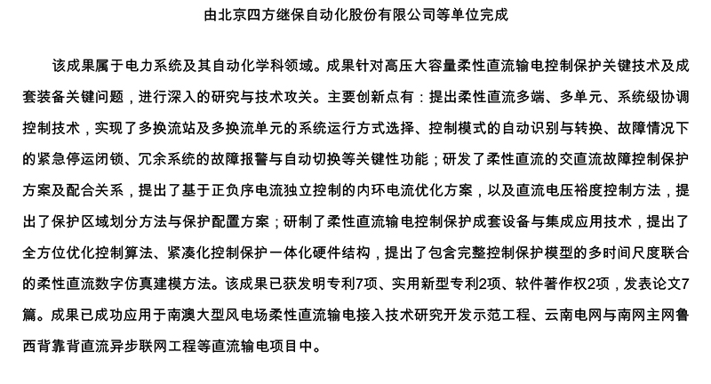 47、高压大容量柔性直流控制保护关键技术研究及装备研制与工程应用