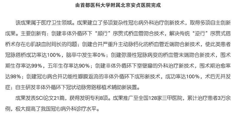42、复杂性冠心病外科治疗的创新技术建立及推广应用