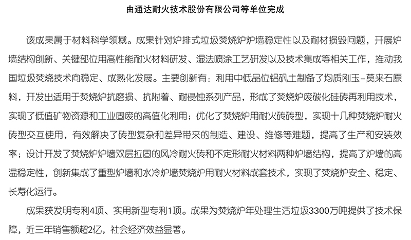 23、炉排式垃圾焚烧炉用耐火材料技术集成与产业化制备