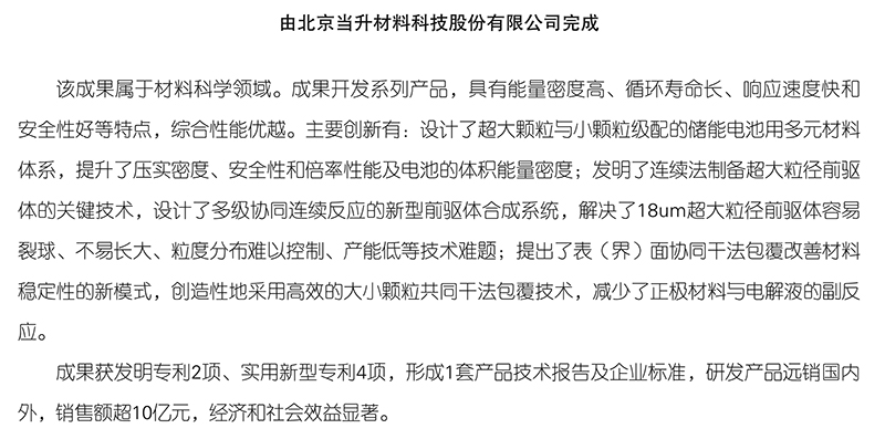 22、储能电池用高能量密度长寿命多元正极材料的开发及产业化应用