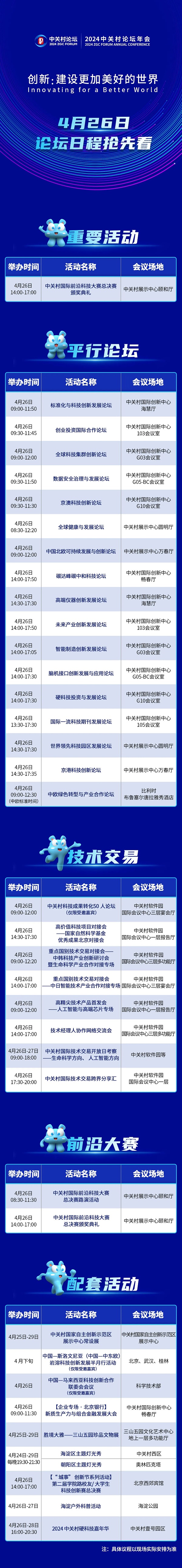 提前剧透!一图了解4月26日中关村论坛年会日程!
