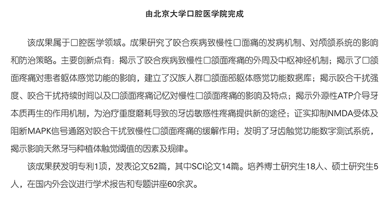 41、咬合疾病致口面痛的外周和中枢机制、对颅颌系统的影响及防治研究