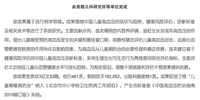 40、我国儿童高血压标准的制定、健康风险评估与防治技术的推广应用