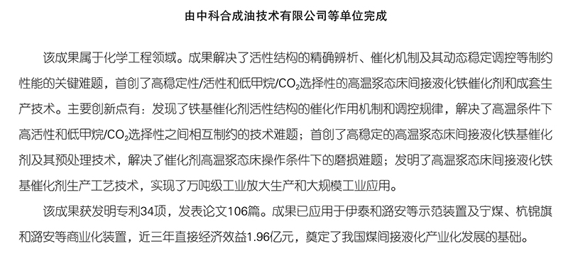 22、高温浆态床煤间接液化催化剂开发及工业应用