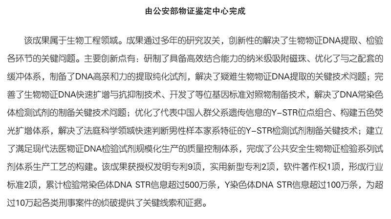 117、公共安全生物物证检验系列试剂研制与示范应用