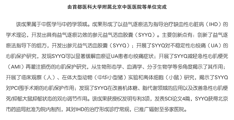 109、益气逐瘀法(参元益气活血胶囊)对缺血性心脏病的心肌保护作用