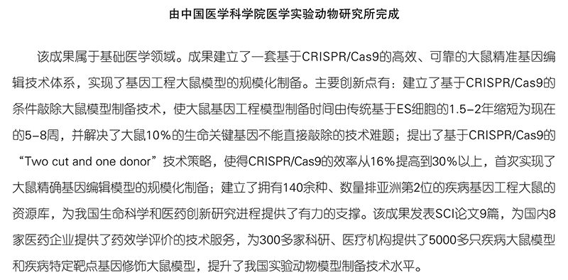 106、基于CRISPR-Cas9的大鼠精确基因编辑技术体系的建立及应用