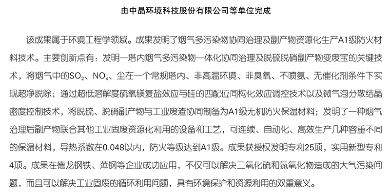 34、烟气多污染物协同治理及副产物资源化生产A1级防火材料技术