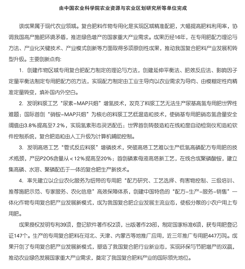 18、我国主要农作物区域专用复合肥料研制与产业化