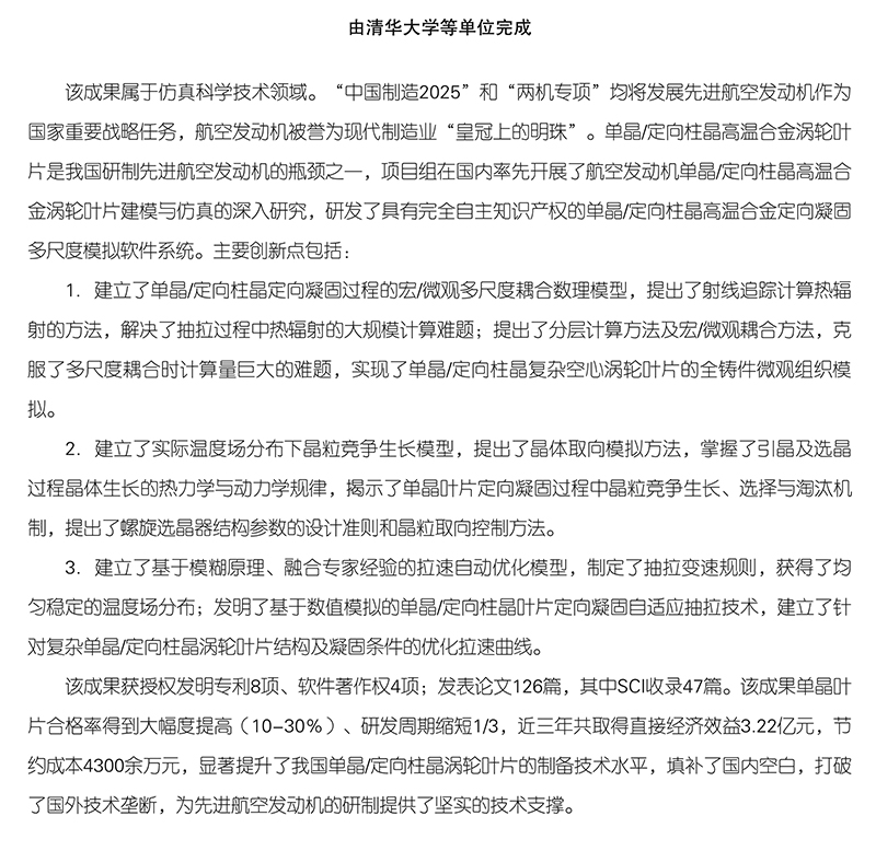 3、航空发动机高温合金叶片定向凝固多尺度建模与仿真技术及工程应用