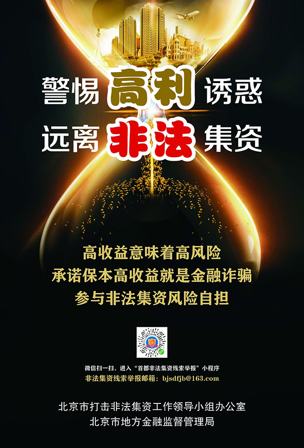 本次宣传月是北京市打击非法集资工作领导小组办公室(以下简称“北京市打非办”)牵头组织的本市第8个防范非法集资宣传月,北京市打非办向各成员单位印发了通知,要求充分发挥各区政府、各相关部门、各行业协会、各金融机构作用,明确职责任务,强化资源和人员配置,集中力量、集聚优势、协同发力,营造防范非法集资宣传氛围,在6月15日集中宣传日,各行业部门、相关媒体集中发声,掀起宣传高潮。