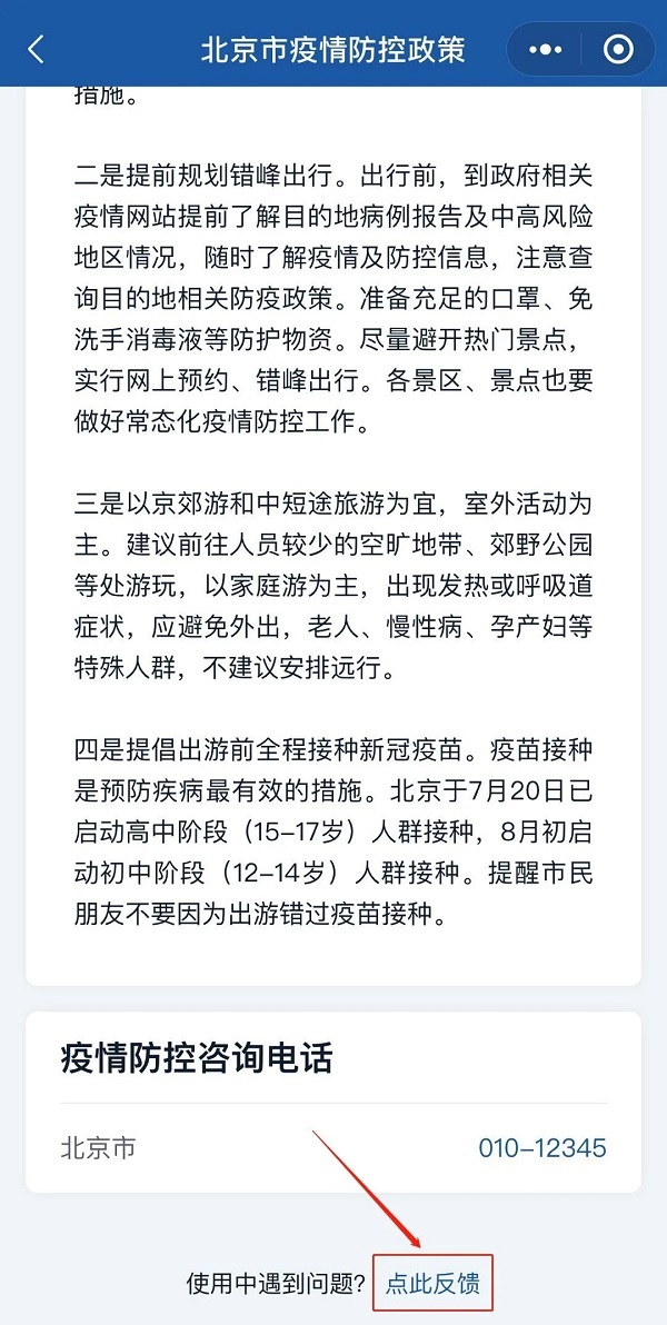 此外,还附带常用的疫情防控服务:防疫行程卡、风险等级查询、核酸机构查询、核酸结果查询,为你出行提供“一条龙”服务!如遇当地执行的政策措施与查询的不一致,可在政策措施全文页面底部留言反馈。