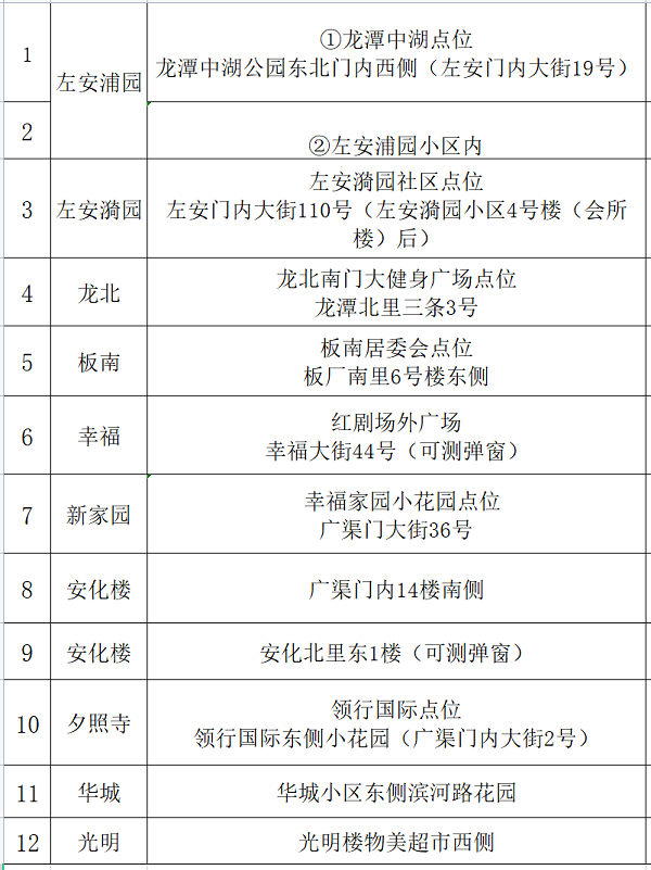 5月7日早6点起,东城区龙潭街道将开设12个检测点位开展核酸检测,请所有工作和生活在龙潭辖区的居民都来参加检测。