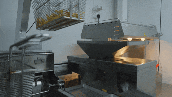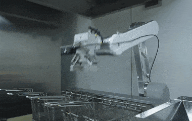 享刻智能的实验室里,时间被精确切割成以秒为单位的片段——下料21秒、炸制170秒、出料26秒——最后,机械臂以一个略带人情味的“抖腕”动作,为刚出锅的薯条撒上盐粒。三分多钟,智能机器人大厨LAVA便完成了一篮香喷喷的薯条。