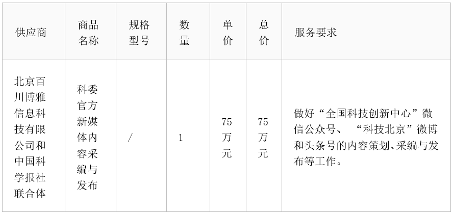 中标成交供应商名称:北京百川博雅信息科技有限公司和中国科学报社联合体