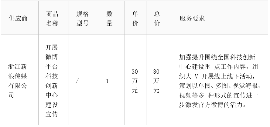 开展微博平台科技创新中心建设宣传成交公告